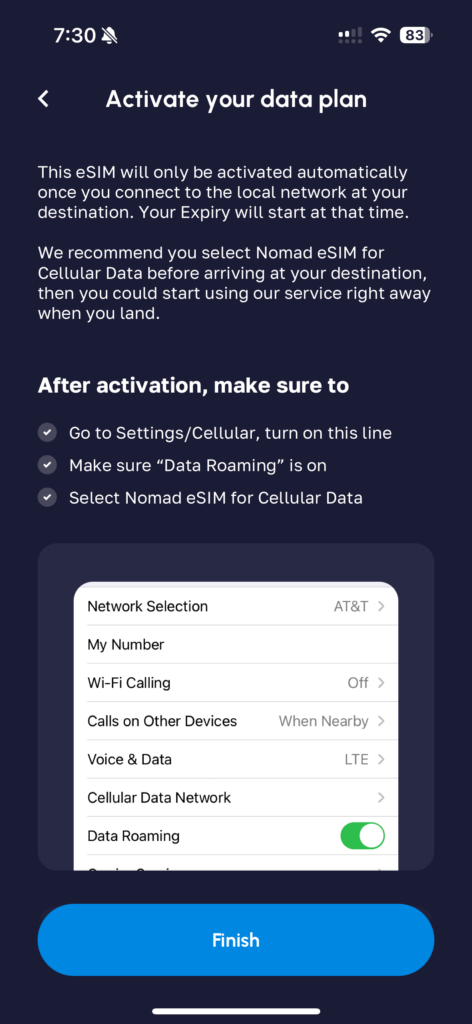 The Nomad eSIM is extremely easy to install through the great app. Being an eSIM, you don’t have to worry about fitting it in your device, which with physical sims, can be tricky, especially on a plane (yes, I’ve dropped my physical sim before and it was not a pleasant experience recovering it on a crowded plane). Plus, you can easily setup and switch between different Nomad eSIMs if you travel to multiple countries, so you don’t have to waste time shopping for a new SIM in each country.
