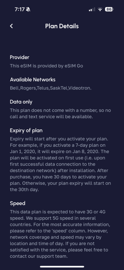 This expiry period is more than enough time to cover most overseas trips, which typically last between one week and one month (at least in my case). Therefore, Nomad’s plan expiry periods provide a great advantage for travelers and should be taken into account when comparing against other eSIM providers.