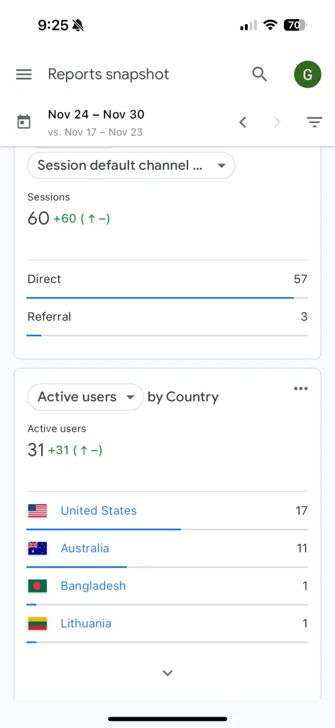 The next image is from Google Analytics. This is the same 7 day period.