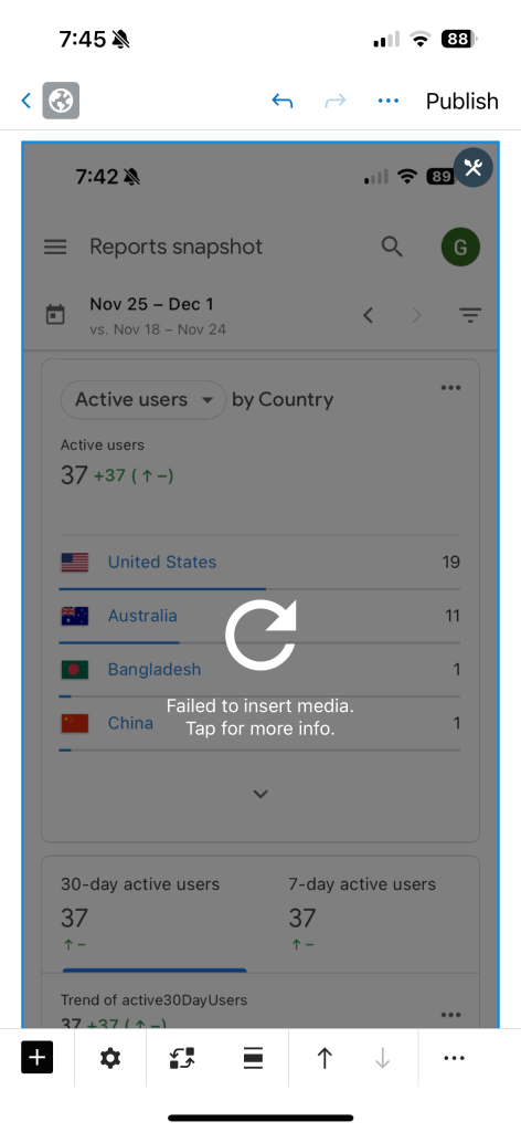 Successful load of a screenshot of an unsuccessful post